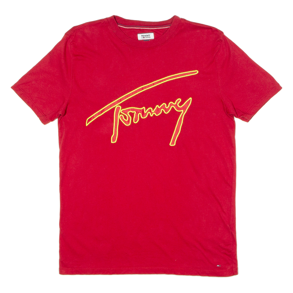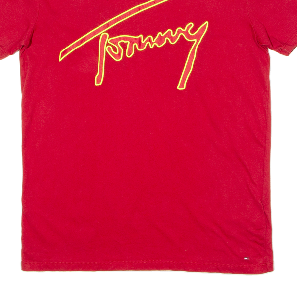 TOMMY HILFIGER Mens T-Shirt Red Crew Neck S