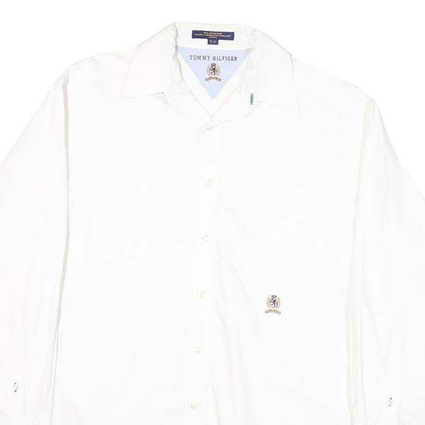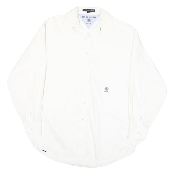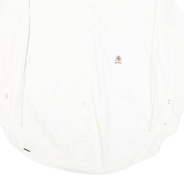 TOMMY HILFIGER Mens White Plain Long Sleeve Shirt L Classic Cotton