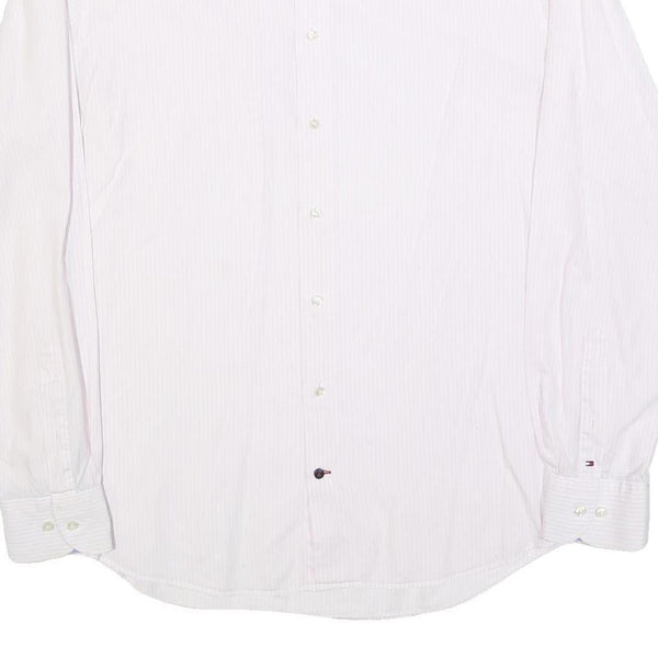 TOMMY HILFIGER Mens White Shirt L Smart Casual Button Detail Long Sleeve