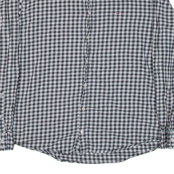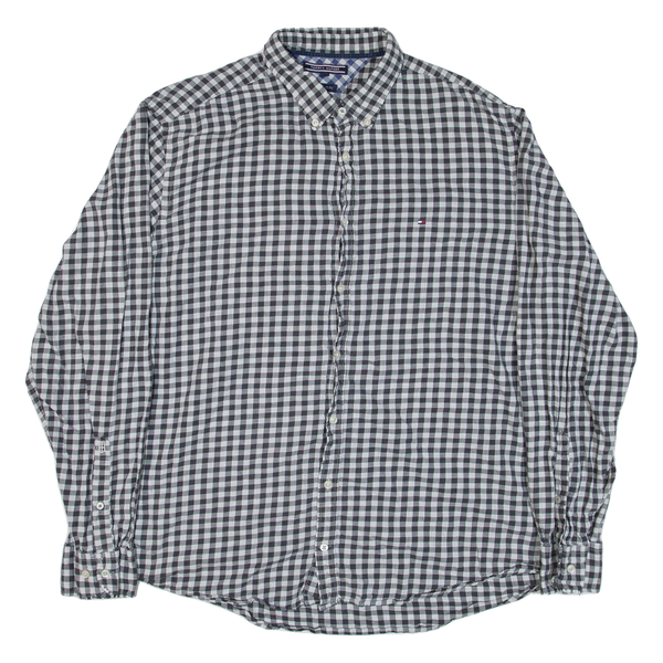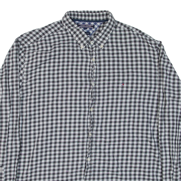 TOMMY HILFIGER New York Fit Mens Shirt Grey Gingham Long Sleeve 2XL