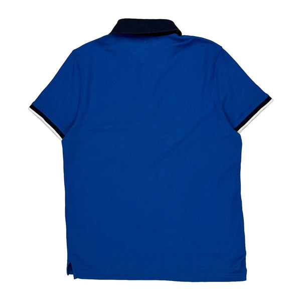 Blue Polo Shirt With Black Collar And Small Logo On Chest