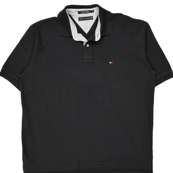 Tommy Hilfiger Black Polo Shirt With Striped Inner Collar.