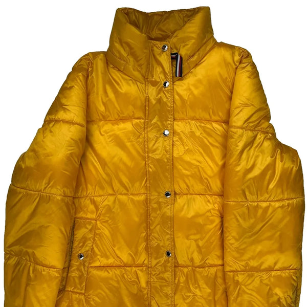 Bright Yellow Puffer Jacket With High Neck And Button Closure.