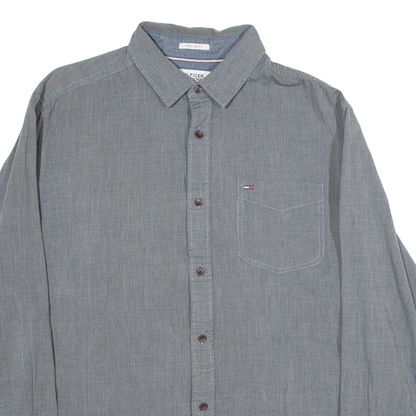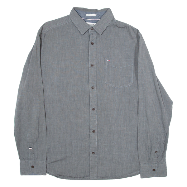 TOMMY HILFIGER Regular Fit Mens Plain Shirt Grey Long Sleeve L