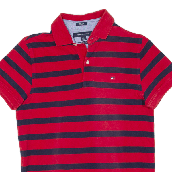 TOMMY HILFIGER Slim Fit Mens Polo Shirt Red Striped XS