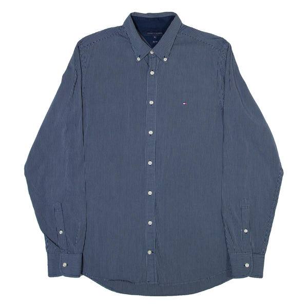 Home TOMMY HILFIGER Slim Fit Mens Shirt Blue Striped Long Sleeve XL