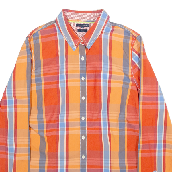 TOMMY HILFIGER Stretch Womens Shirt Orange Check Long Sleeve M