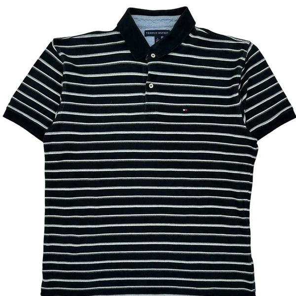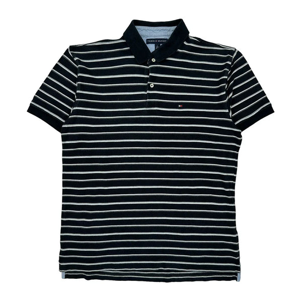 Tommy Hilfiger Black And White Striped Polo Shirt In Very Good Condition.