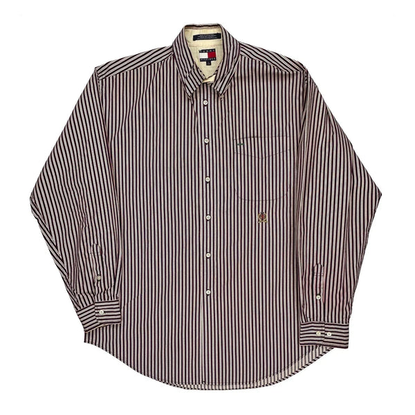 Tommy Hilfiger Striped Shirt, Burgundy And White, Button-Down