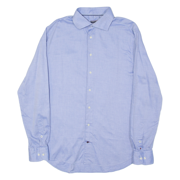 TOMMY HILFIGER Tailored Fitted Mens Plain Shirt Blue Long Sleeve L