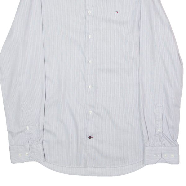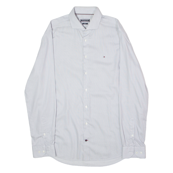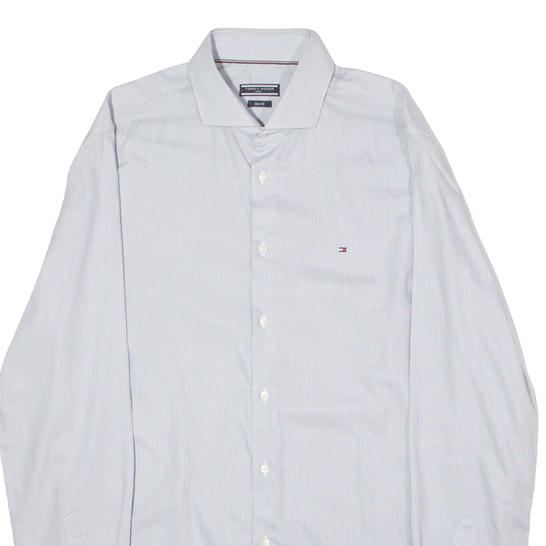 TOMMY HILFIGER Tailored Slim Fit Mens Shirt Grey Striped Long Sleeve L