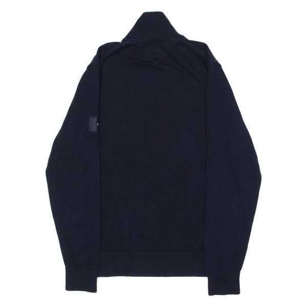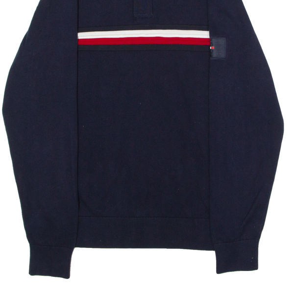 TOMMY HILFIGER TH FLEX Mens Patterned Jumper Blue Striped 1/4 Zip Tight Knit 2XL