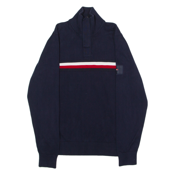 Tommy hilfiger th flex mens patterned jumper blue striped 1/4 zip tight knit 2xl