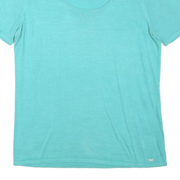 Tommy hilfiger womens aqua plain cotton blend jumper l short sleeve round neck