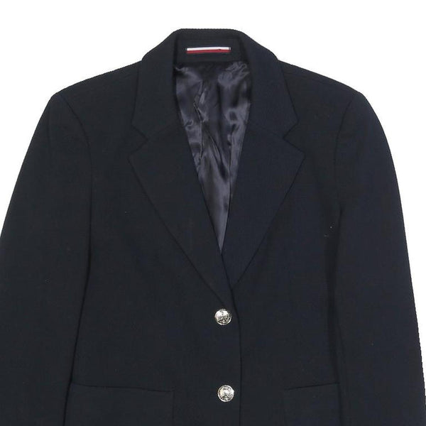 TOMMY HILFIGER Womens Black Classic Jacket UK 8 Polyester Blend Button Plain