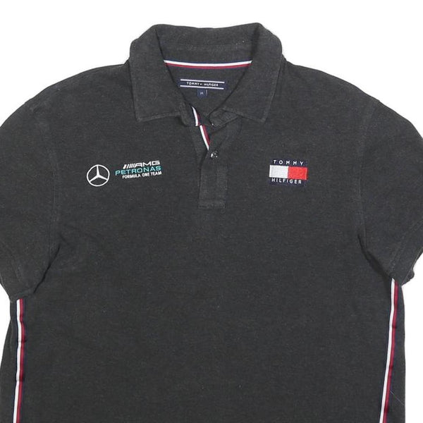 TOMMY HILFIGER Womens Black Formula One Team Short Sleeve Polo Shirt M Racing