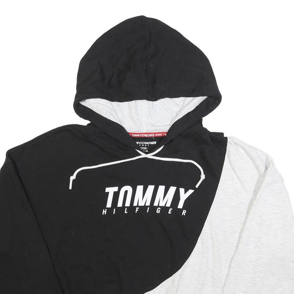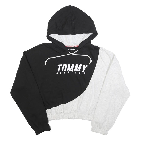 Home TOMMY HILFIGER Womens Black & Grey Cotton Blend Hoodie XL Crop Sweatshirt Casual