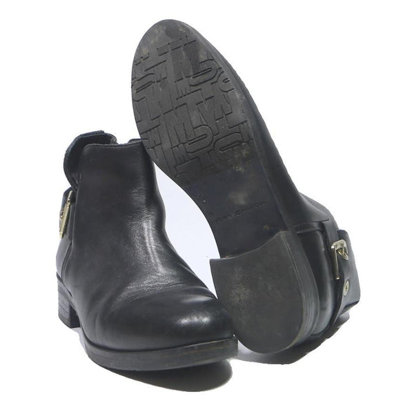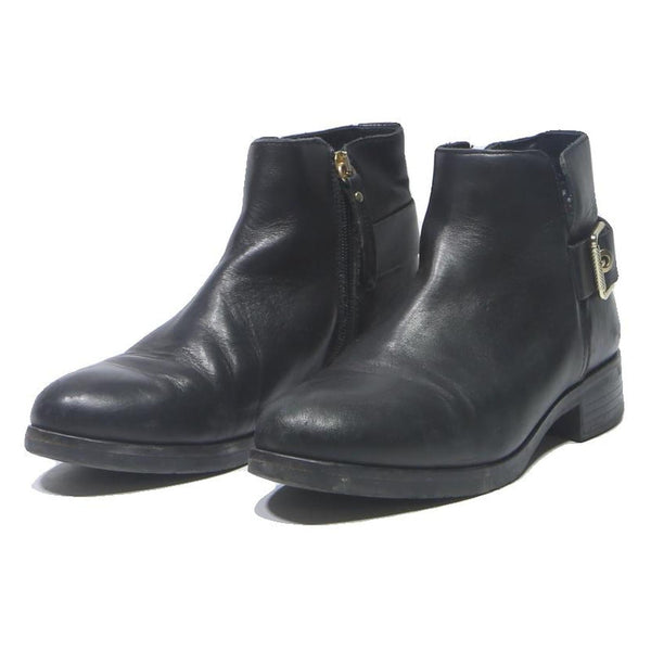 Tommy hilfiger womens black leather ankle boots uk 4 buckle detail stylish