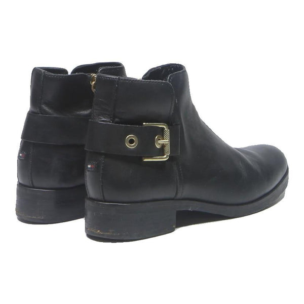 Home TOMMY HILFIGER Womens Black Leather Ankle Boots UK 4 Buckle Detail Stylish