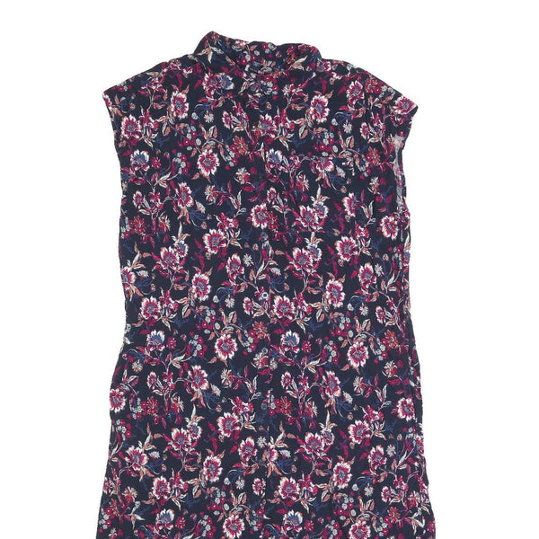 TOMMY HILFIGER Womens Blue Floral Shirt Dress Cotton Blend Sleeveless S Button