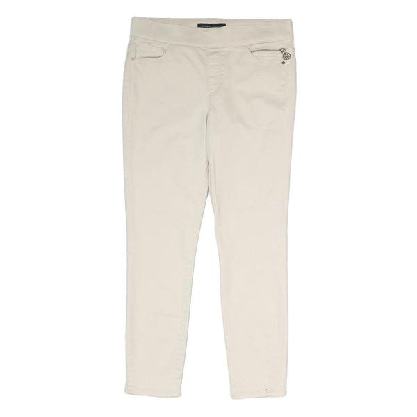 TOMMY HILFIGER Womens Cotton Blend Cream Slim Trousers W30 L28 Stylish Comfort