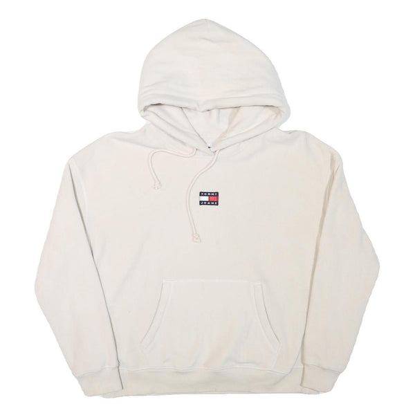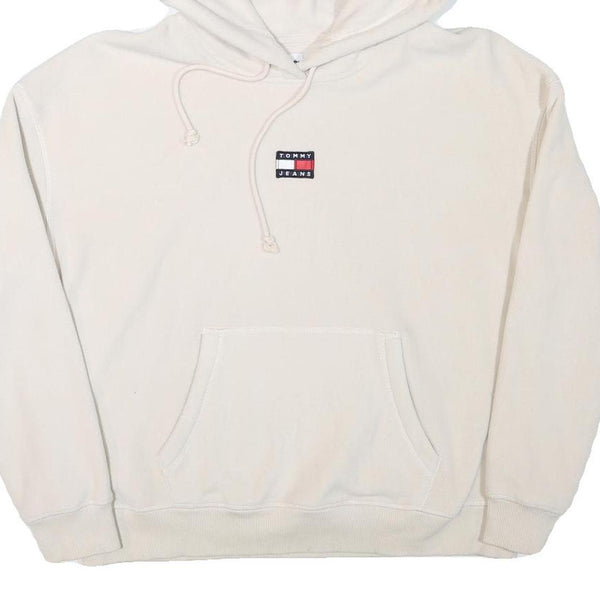 TOMMY HILFIGER Womens Cream Hoodie L Tommy Jeans Logo Pullover Drawstring