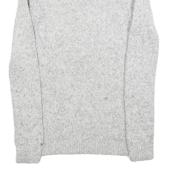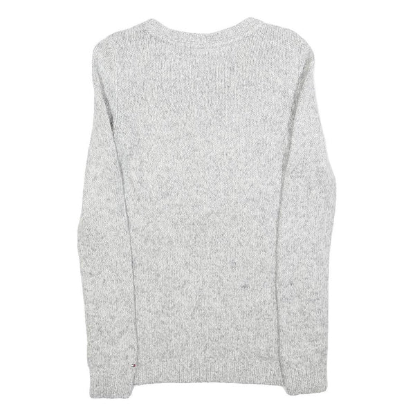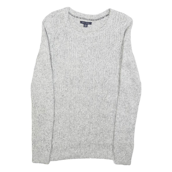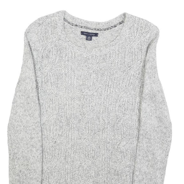 TOMMY HILFIGER Womens Grey Cable Knit Cotton Blend Jumper Crew Neck XS Soft Warm