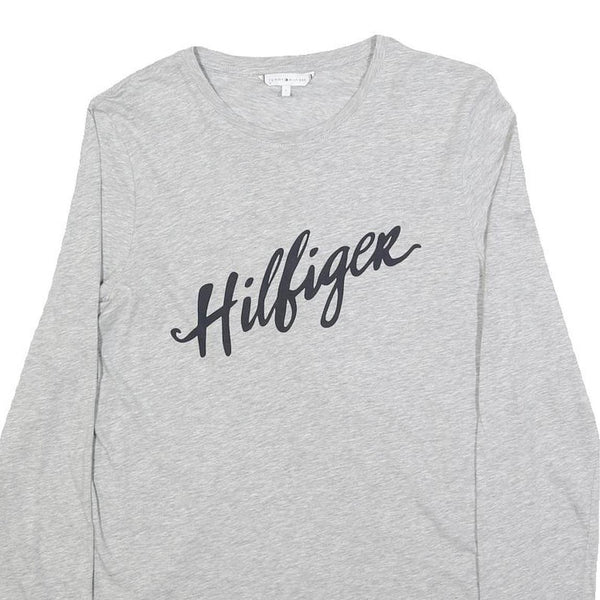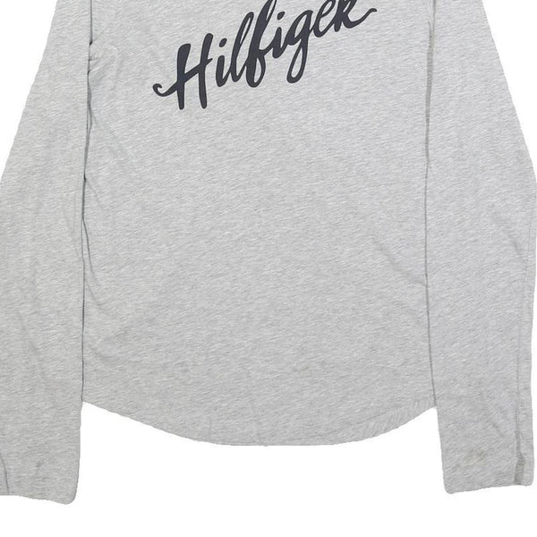 TOMMY HILFIGER Womens Grey Long Sleeve Crew Neck T-Shirt S Hilfiger Script