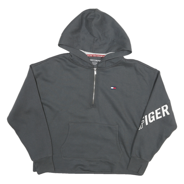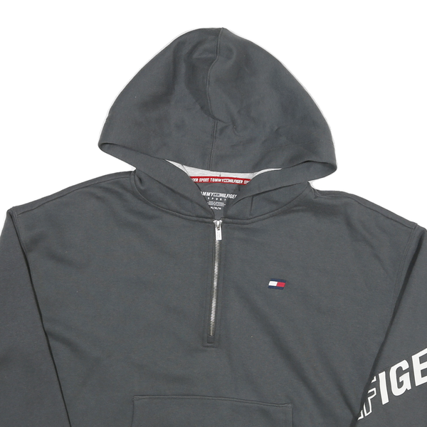 TOMMY HILFIGER Womens Grey Zip Half Hoodie M Logo Sleeve Print