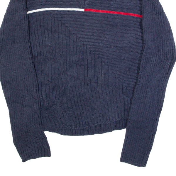 TOMMY HILFIGER Womens Jumper Blue V-Neck Tight Knit M