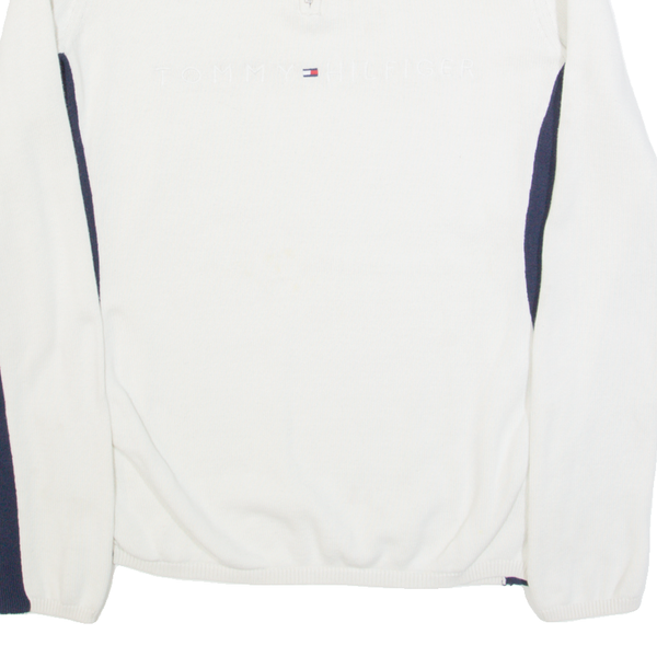 TOMMY HILFIGER Womens Jumper White 1/4 Zip Tight Knit S