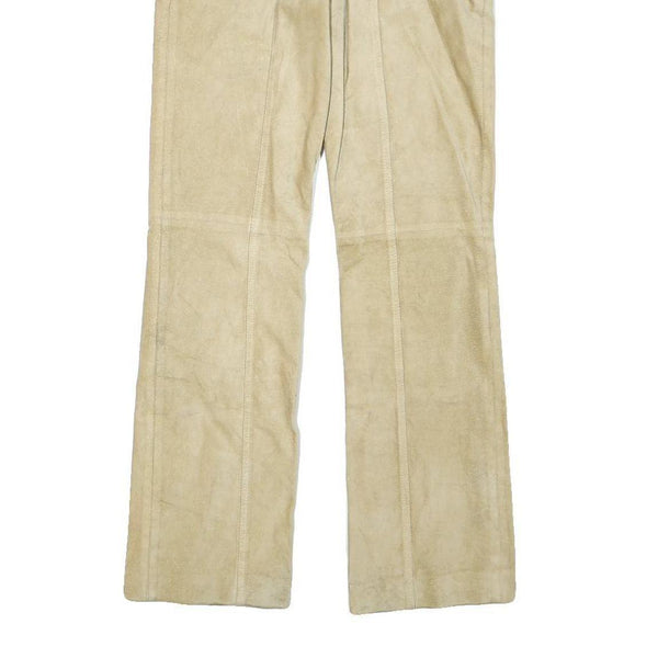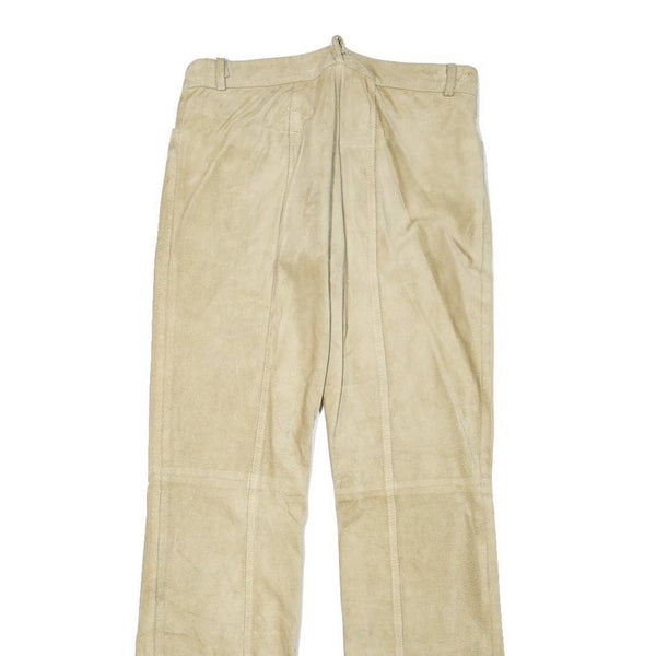 TOMMY HILFIGER Womens Leather Beige Regular Fit Straight Leg Trousers W28 L30
