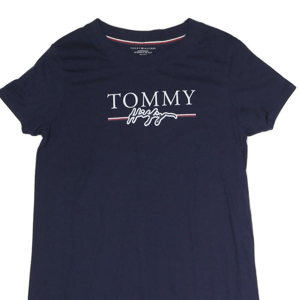 TOMMY HILFIGER Womens Navy Blue Logo Print T-Shirt Dress Cotton Blend Short