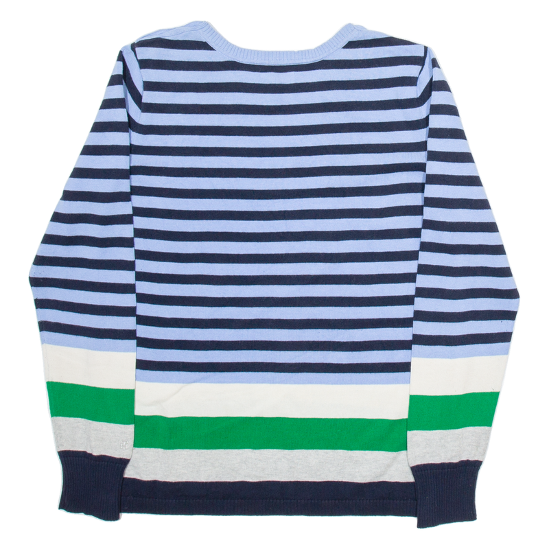 TOMMY HILFIGER Womens Patterned Jumper Blue Striped Tight Knit L