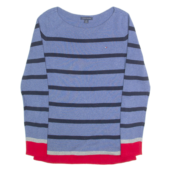 Tommy hilfiger womens patterned jumper blue striped tight knit s