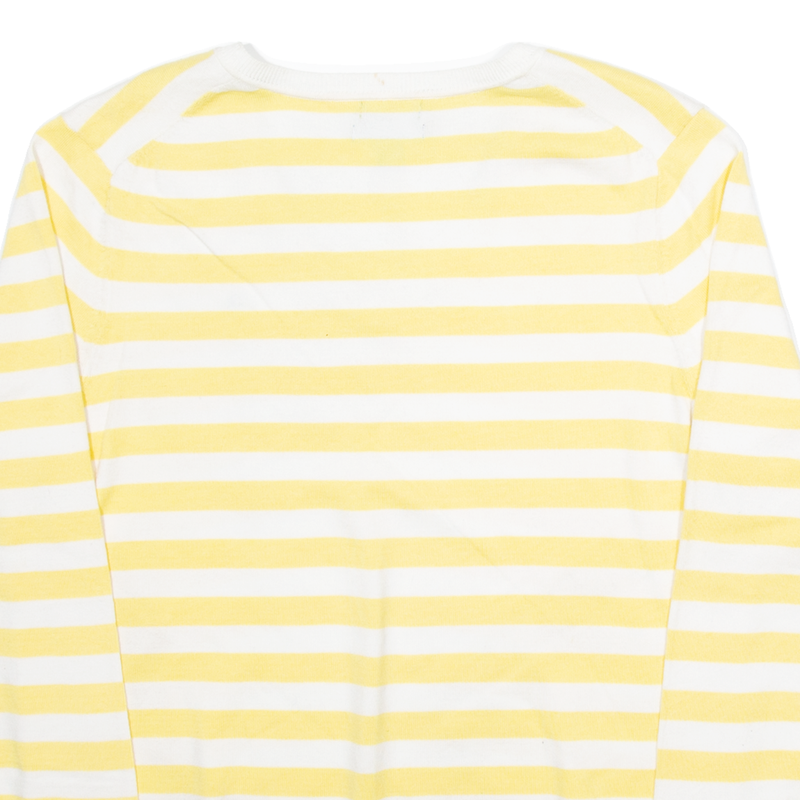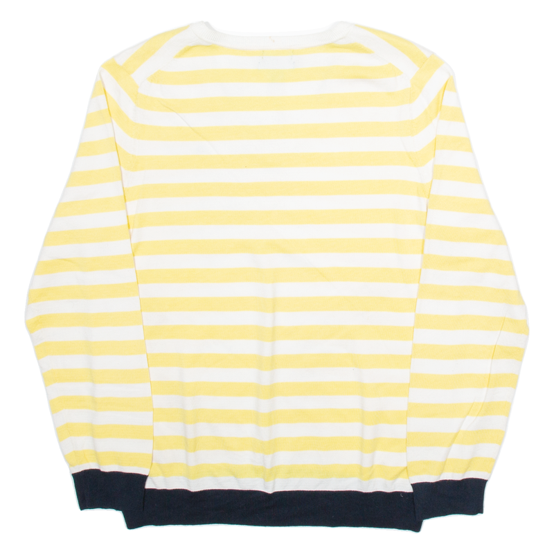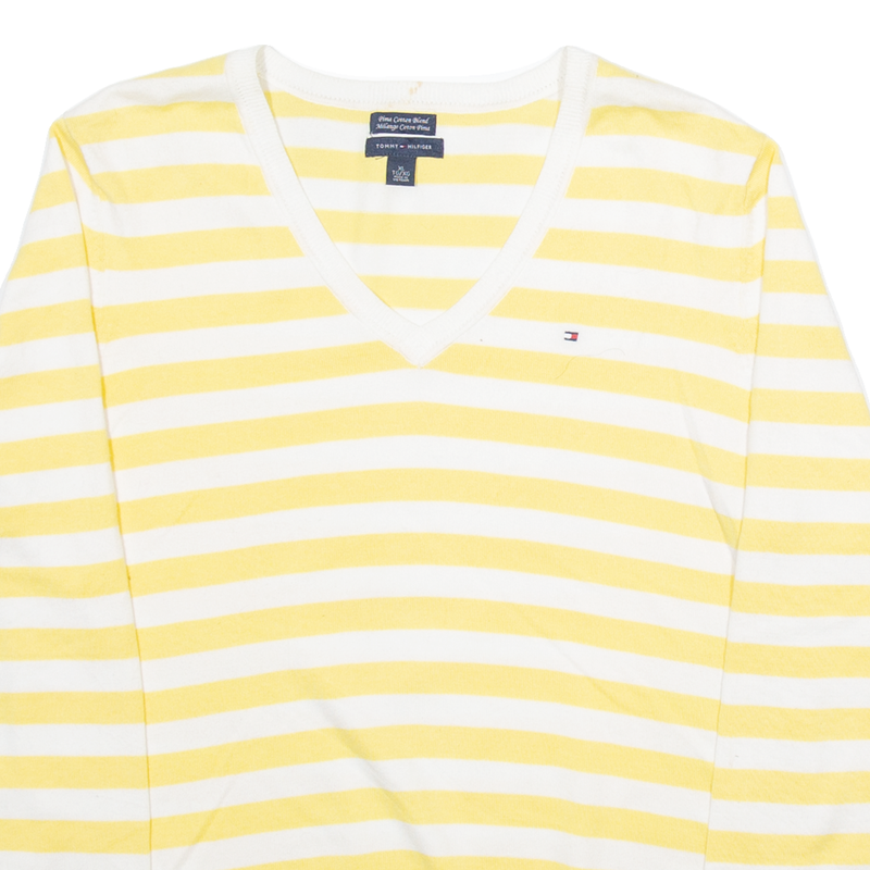 TOMMY HILFIGER Womens Patterned Jumper White Striped V-Neck Tight Knit XL