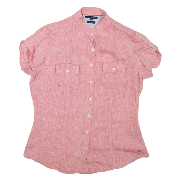 TOMMY HILFIGER Womens Plain Shirt Pink Linen S