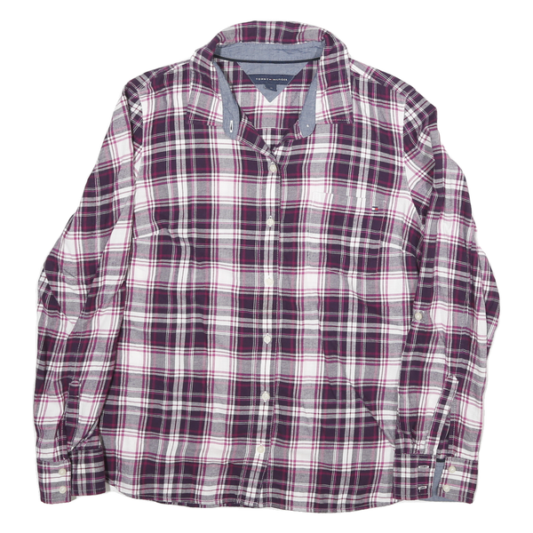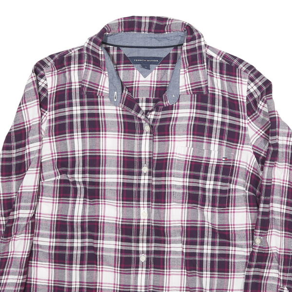 Home TOMMY HILFIGER Womens Purple & White Check Shirt L Cotton Blend Casual Stylish
