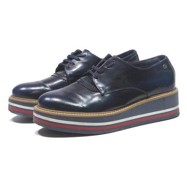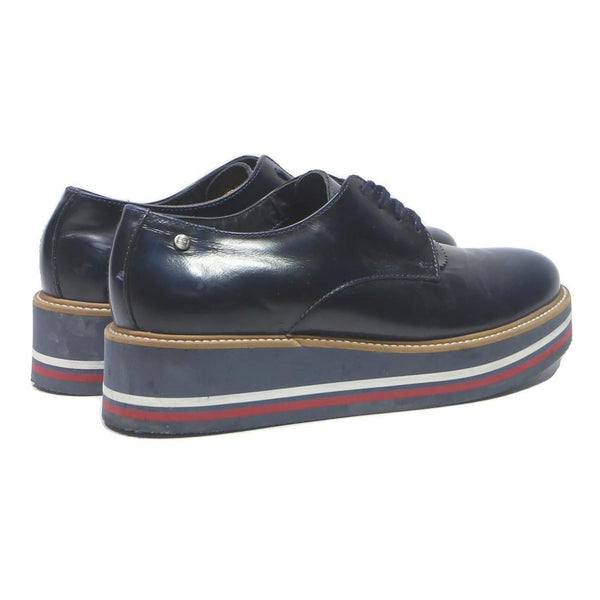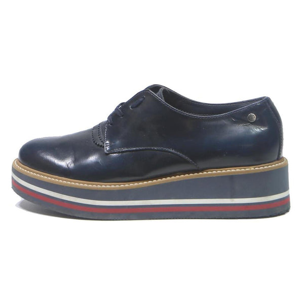 TOMMY HILFIGER Women's Striped Platform Lace-Up Leather Shoes Navy UK 5 Stylish