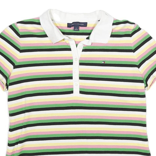 TOMMY HILFIGER Womens White & Green Striped Short Sleeve Polo Shirt M Cotton