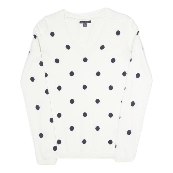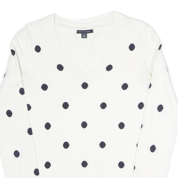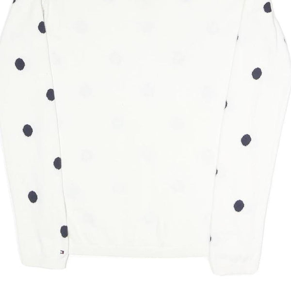 TOMMY HILFIGER Womens White & Navy Polka Dot Patterned Cotton Blend Jumper