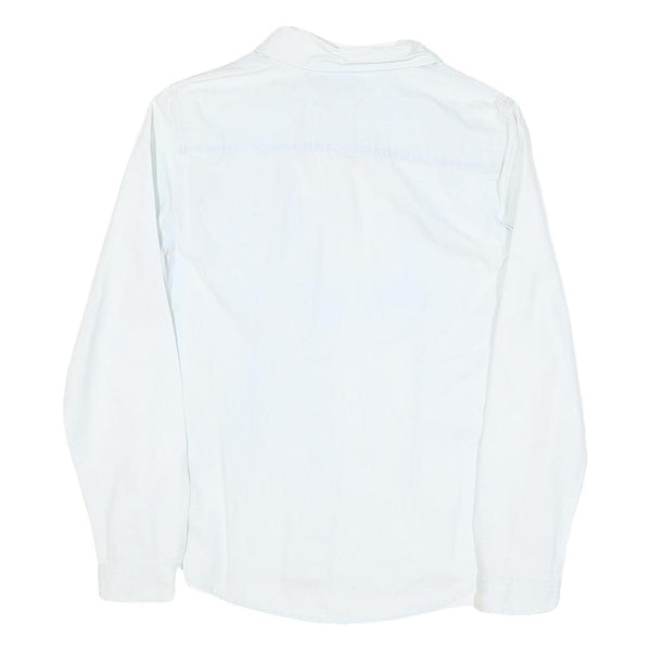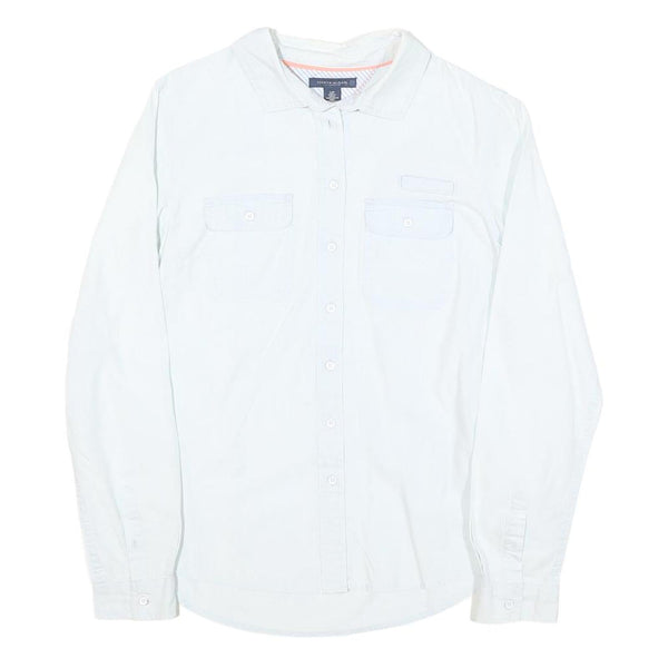 TOMMY HILFIGER Womens White Plain Shirt S Button Front Cotton Blend Stylish