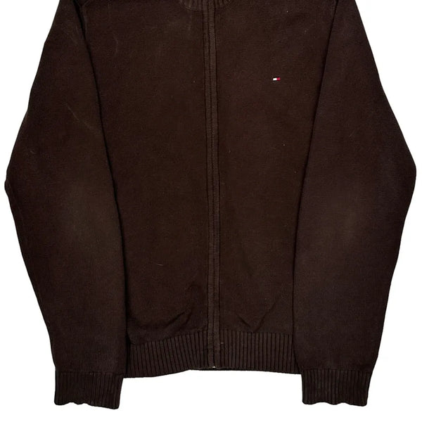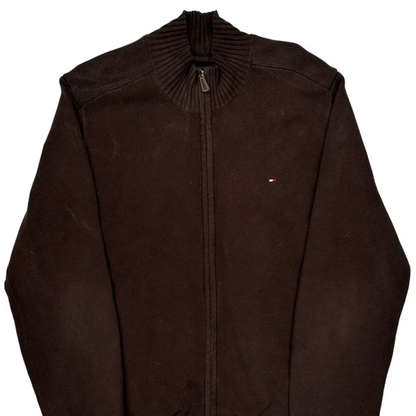 Brown Zip-Up Top With Ribbed Collar And Cuffs.