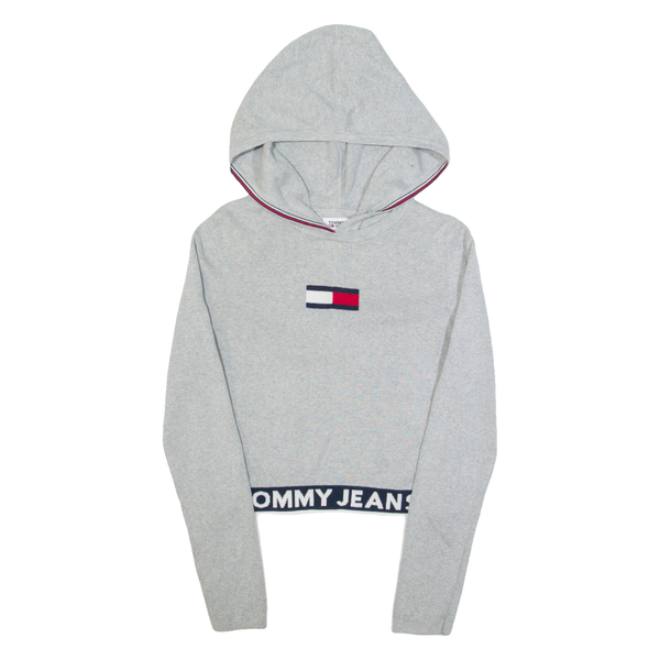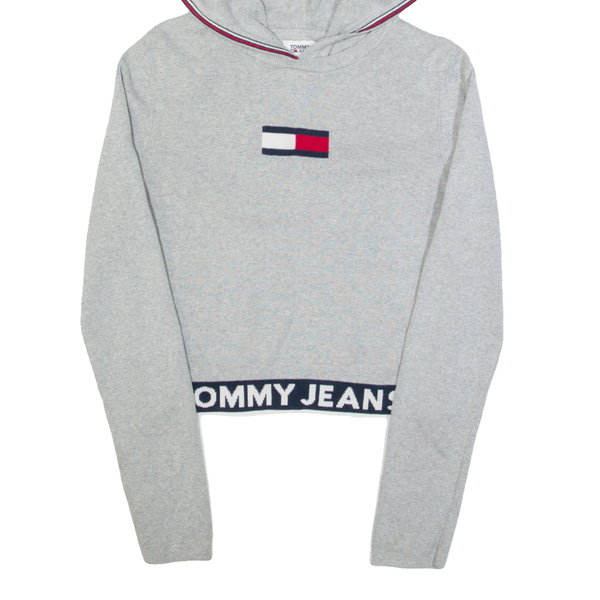 TOMMY JEANS Cropped Hooded Womens Jumper Grey Tight Knit M