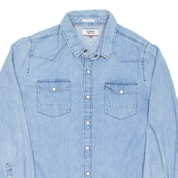 TOMMY JEANS Mens Plain Shirt Blue Long Sleeve S