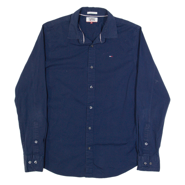 TOMMY JEANS Slim Fit Mens Plain Shirt Blue Long Sleeve M