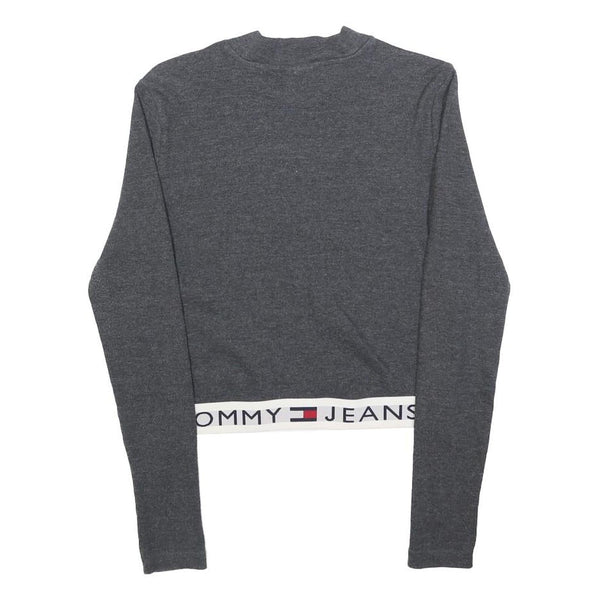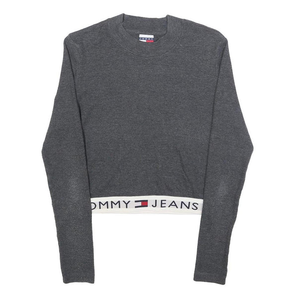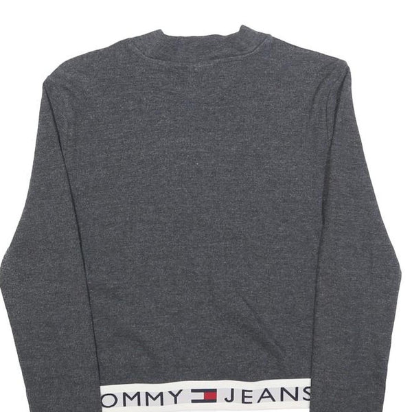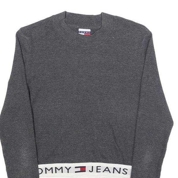 TOMMY JEANS Womens Grey Plain Crew Neck Basic Knit Jumper S Logo Band Bottom