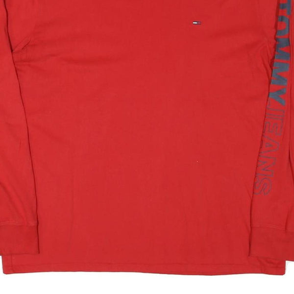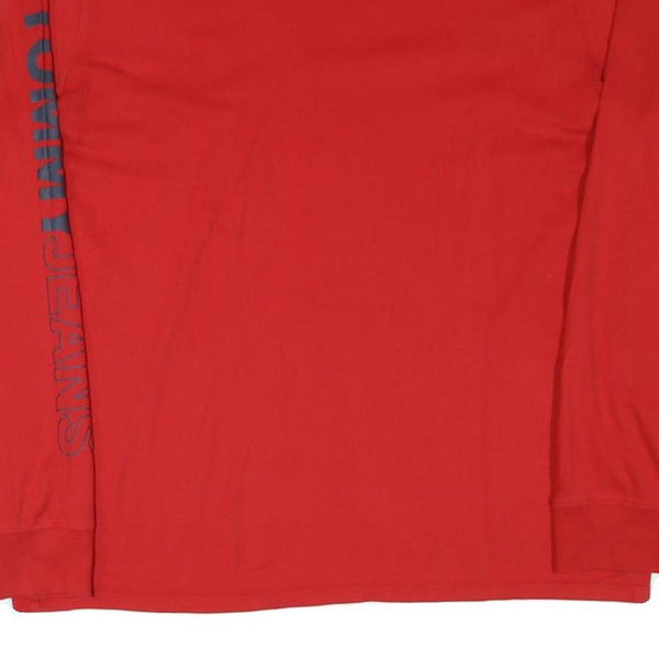 TOMMY JEANS Womens Red Long Sleeve Crew Neck Logo Cotton Blend L T-Shirt