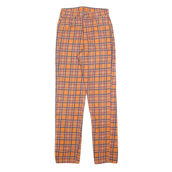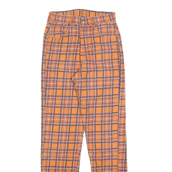 TOP IN Womens Cotton Blend Orange & Purple Tartan Slim Straight Trousers W26 L32