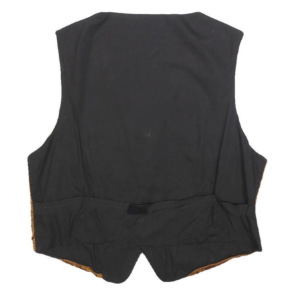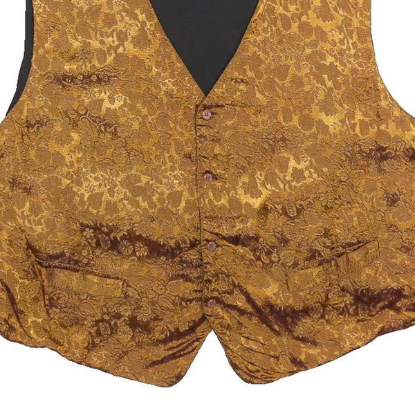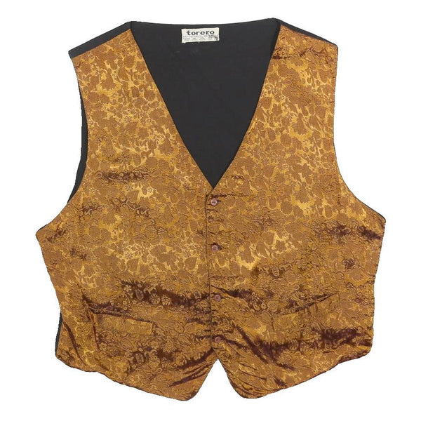 TORERO Mens Gold Brown Jacquard Button Waistcoat L Polyester Blend Formal